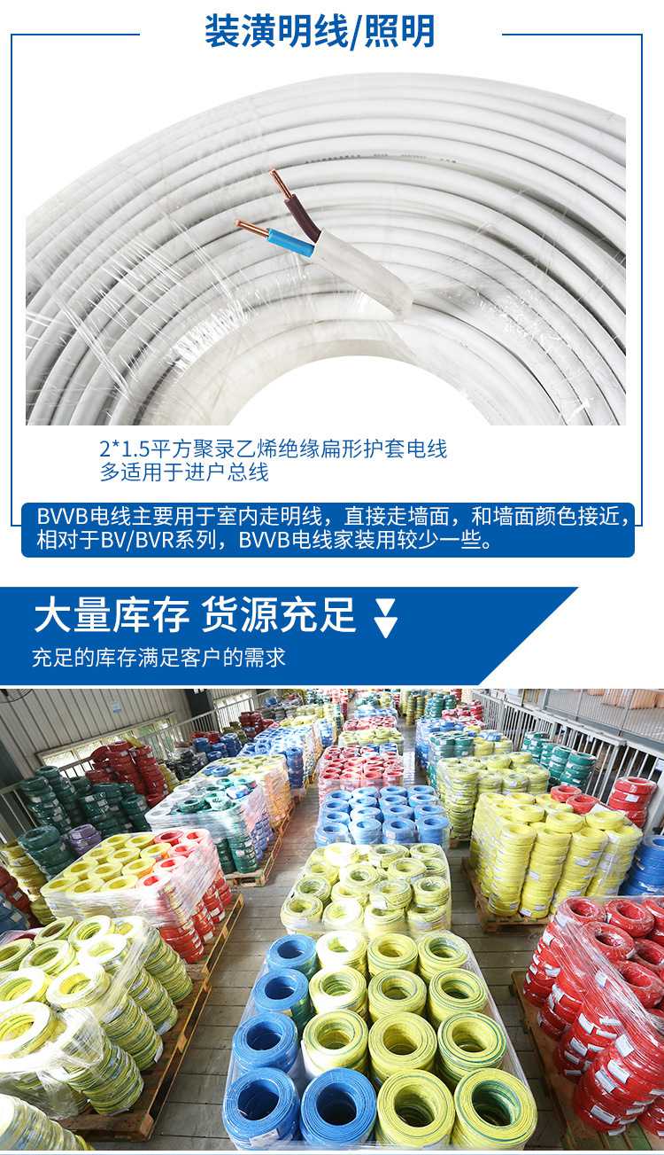 漢河電線 BVVB 26mm2國標2芯硬護套線銅芯家裝電線家用明線